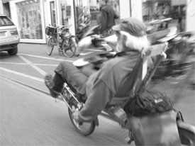 So I rode around Frankfurt for a month. Little kids chase me, guys follow me on their bikes, cars stop, people gawk and ask where I came from. I say outer space. It’s a chick magnetic. If I was only 29.
