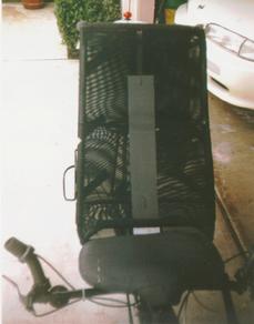 bolts. The tailbox narrows in a V-like shape that actually improves the aerodynamics of the bike. I also mount 3M reflective tape for better visibility. I expect to mount flashing LED's along the rear edge as well .... by attaching externally mounted LED's to an existing Vistalite(TM). |