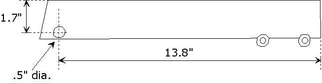 Upon welding the three main tubes, the Pulley Mount holes are drilled. If the 114° cross-member frame is to be made, this 1/2-inch hole is drilled 24 inches as measured from the aft main tube forward. The hole is placed dead center and goes through both sides of the tube. If the 90° cross-member frame is desired, the 1/2 inch hole is drilled 29.5 inches as measured from the aft main tube forward. As shown in the above and below drawings, this hole is located on the forward tube near the bottom extreme of the tube. To drill this 1/2 inch hole through the bottom extreme of the tube is challenging. However, it can be best accomplished using a 1/2- inch hole without the pilot.