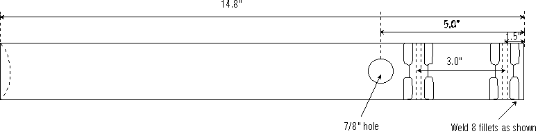 Upon welding, a 7/8-inch hole is drilled 5 inches down the tube as shown in the above drawings.
