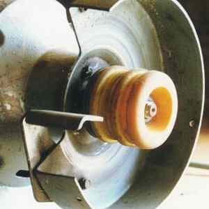 Skate wheels are used, see these pic1, pic2 on how to grind the groove. These 2 wheels were made close enough together so the chain is captured in the groove. N.B. Some of these pictures are taken upside down) |