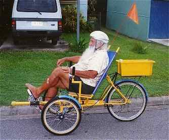 If you need a high seat on a machine check out Wally's 21 speed trike from Deception Bay. Custom built by Tempo Worldwide in Queensland. Wally rides for 20-30 klms every day - so if you are up early morning around 5 am you may see Wally riding or stopping to talk to somebody. If 5am is too early he's back on the road at 3pm.